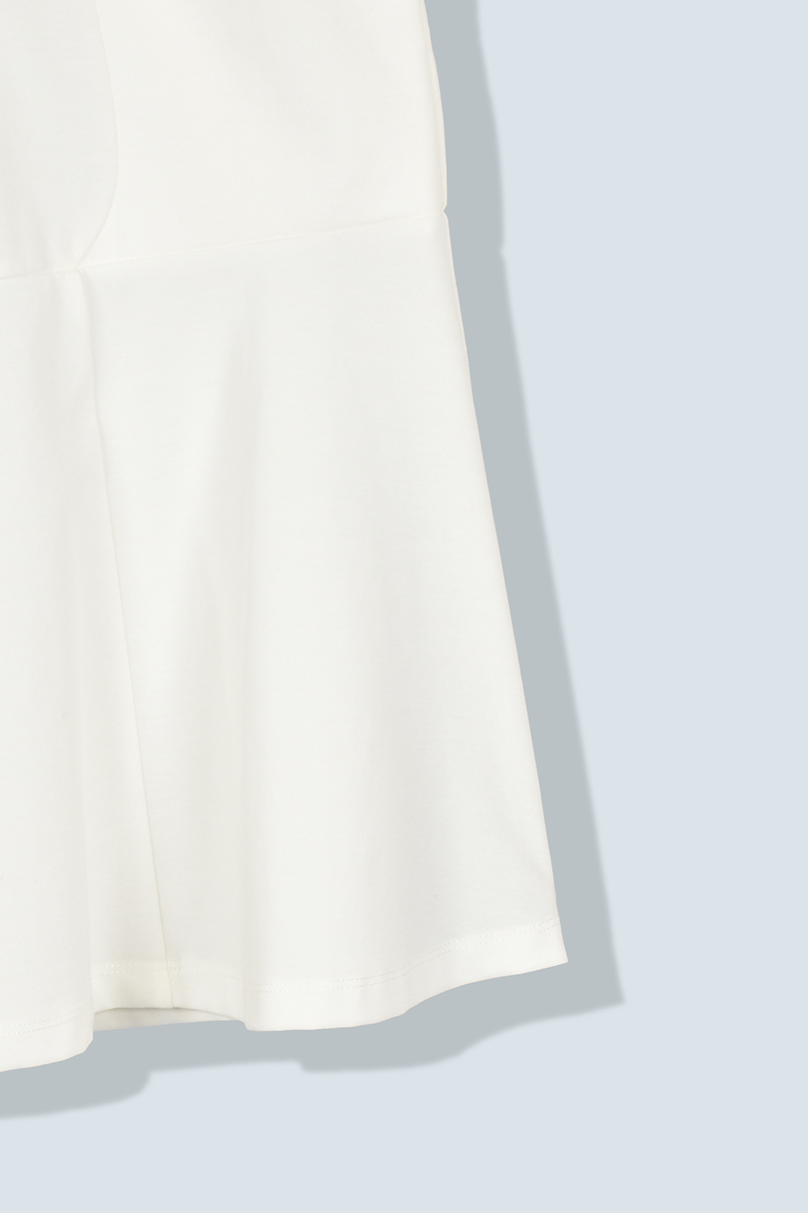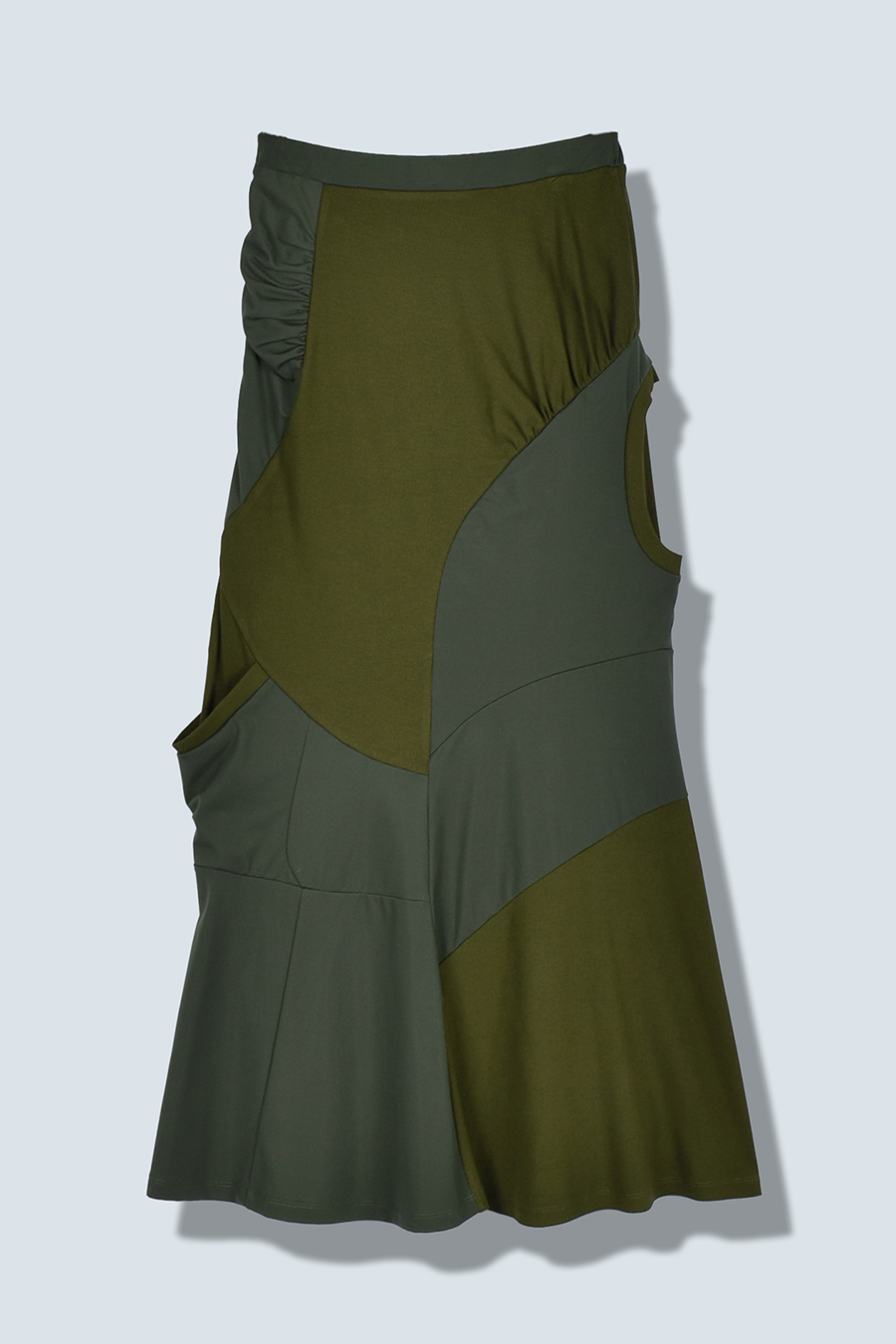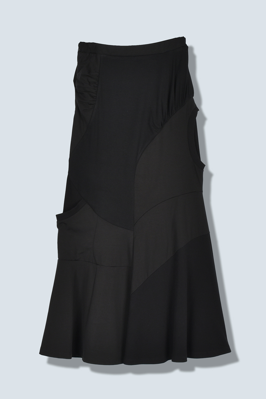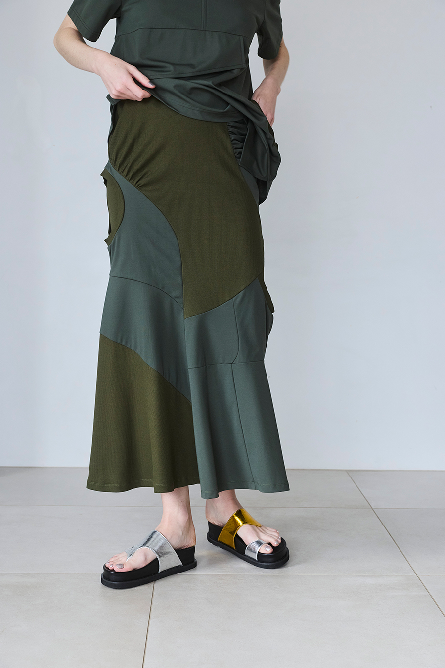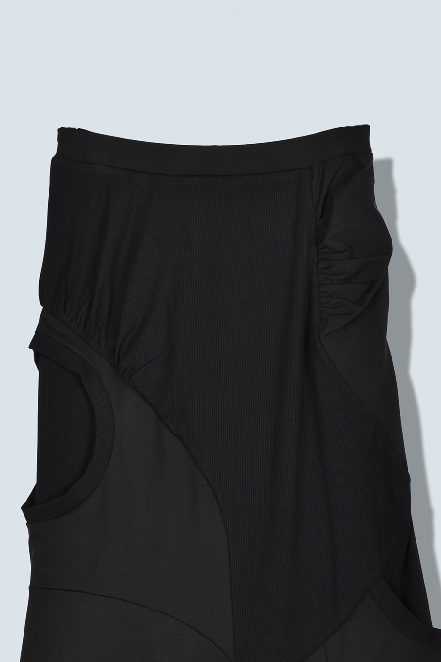 Tシャツを解体して再構築したようなデザインのカットソースカート。カジュアルなデザインながらも、マーメイドシルエットがほどよい女性らしい印象を演出。