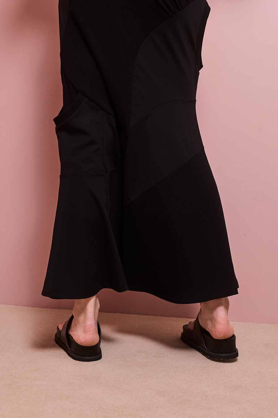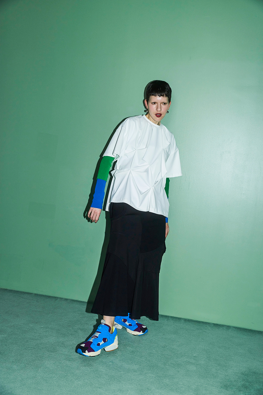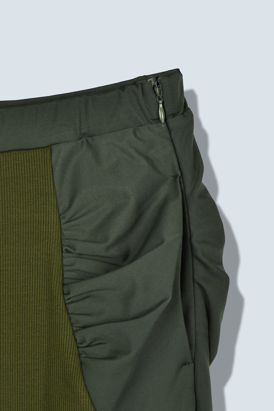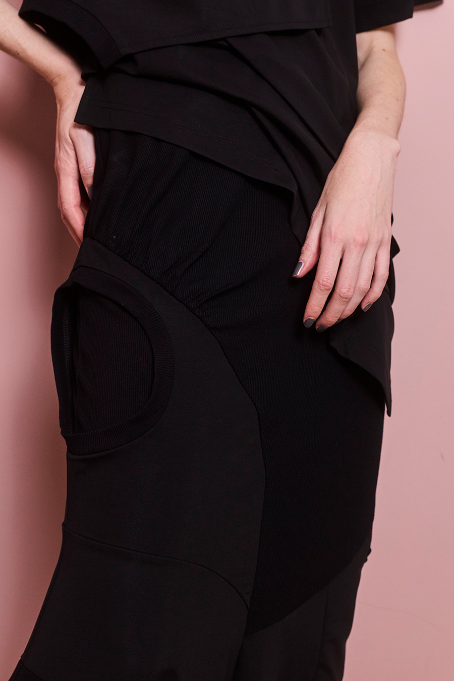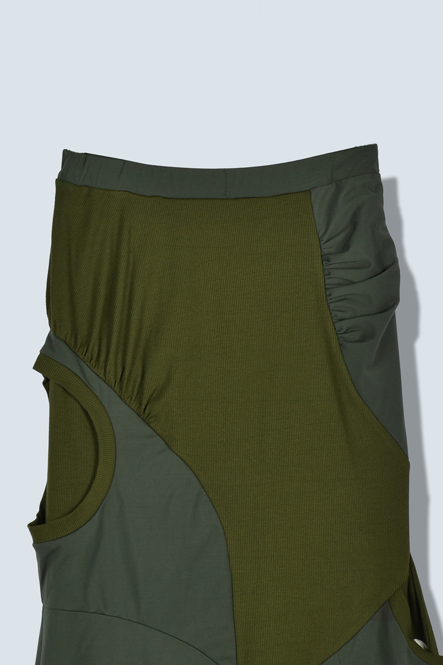 Tシャツを解体して再構築したようなデザインのカットソースカート。カジュアルなデザインながらも、マーメイドシルエットがほどよい女性らしい印象を演出。