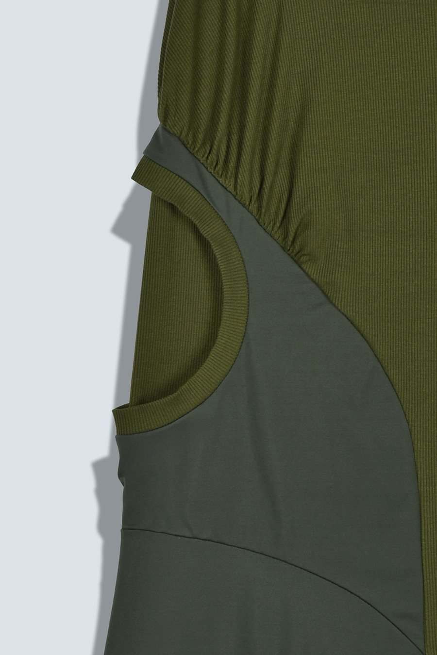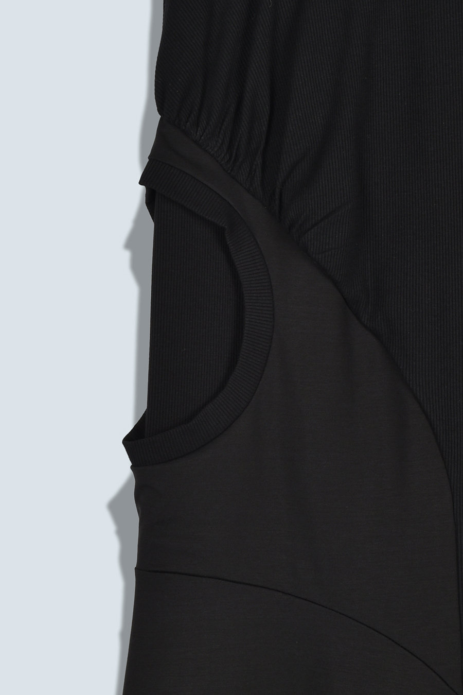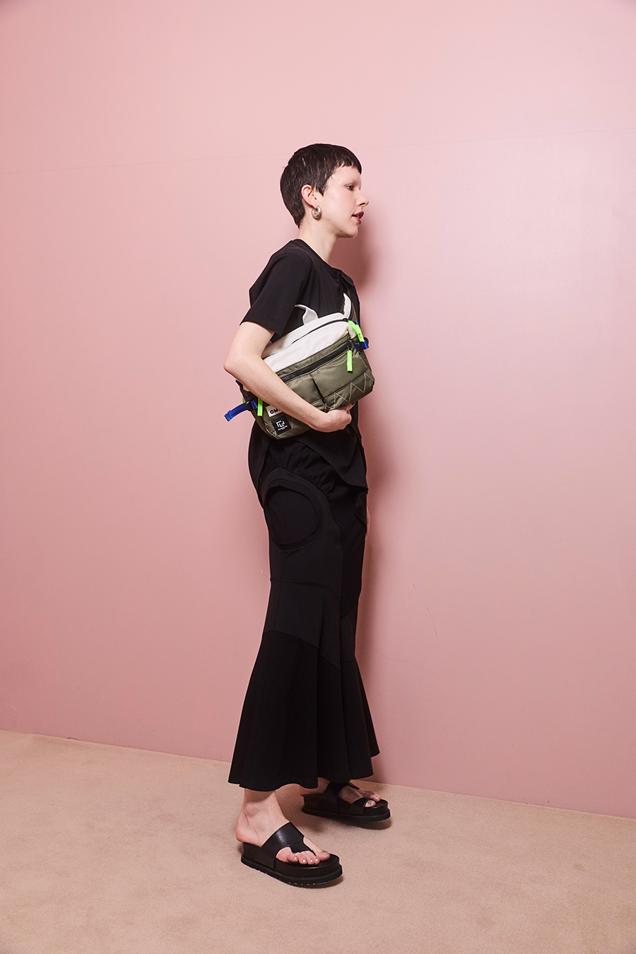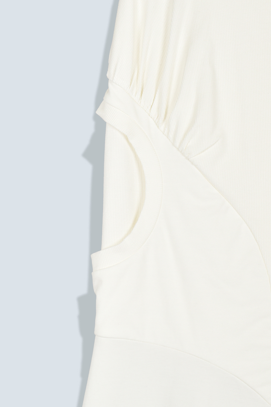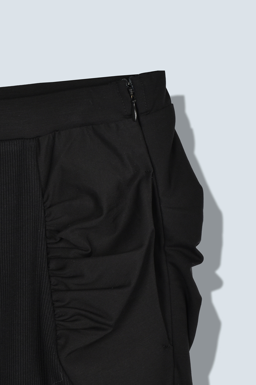 Tシャツを解体して再構築したようなデザインのカットソースカート。カジュアルなデザインながらも、マーメイドシルエットがほどよい女性らしい印象を演出。