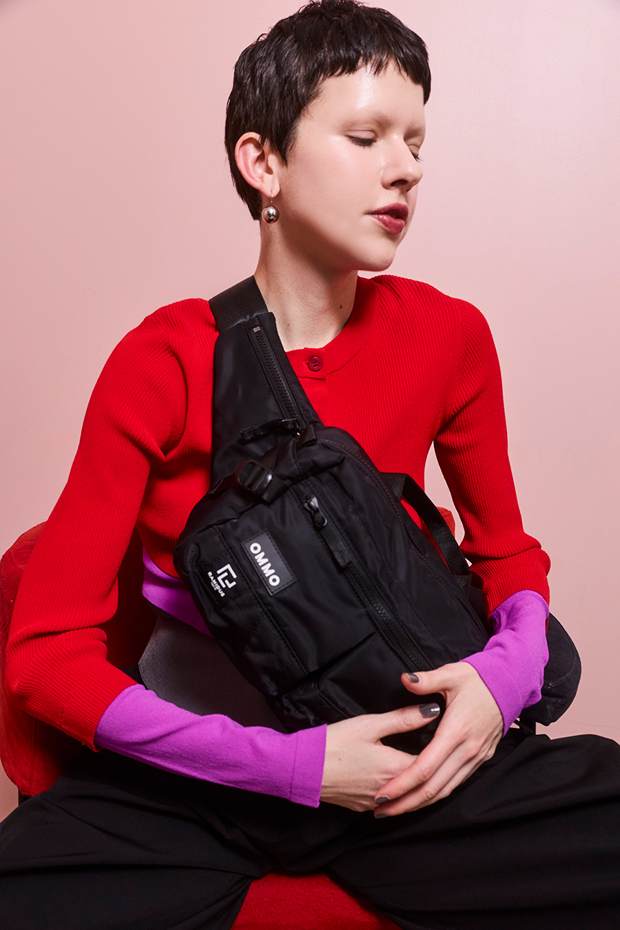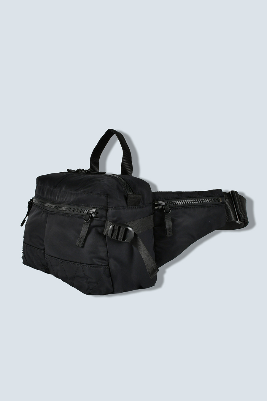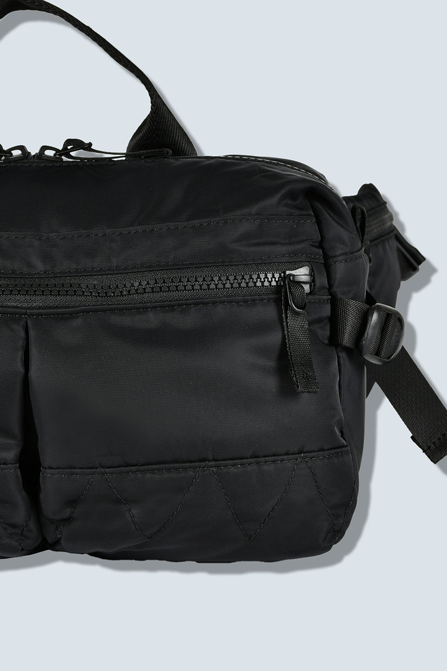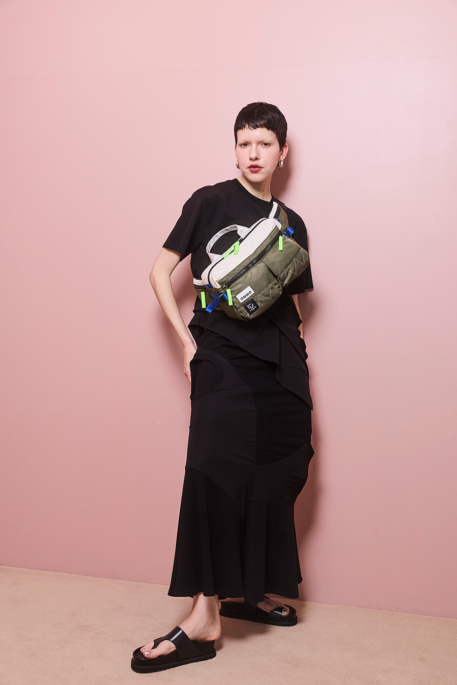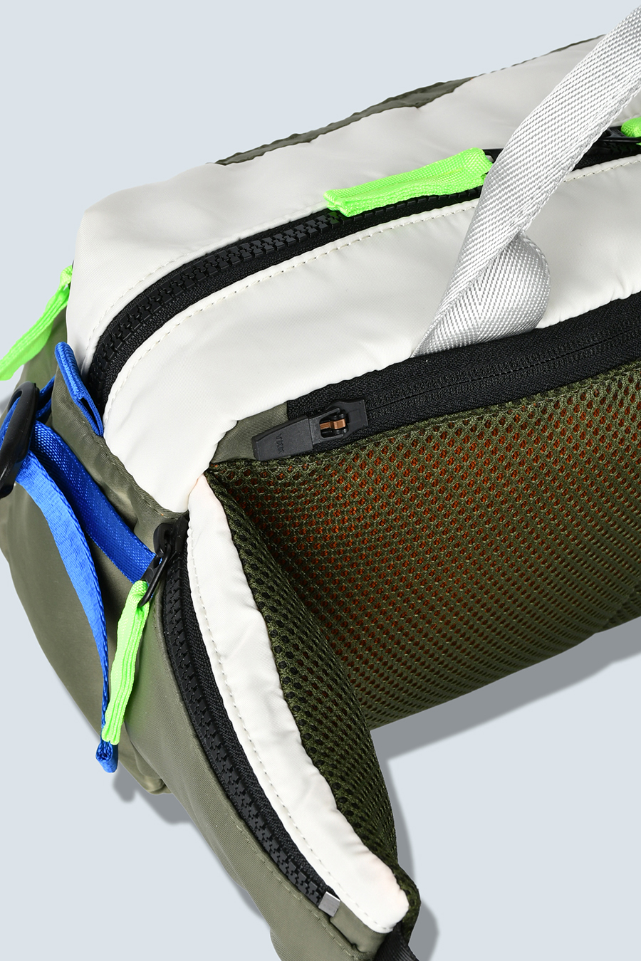 RAMIDUS×OMMOコラボレーションアイテムのウエストバッグ。フロントポケットのMA-1ディティールのステッチや、KHAKIのOMMOらしい配色がポイントになっております。