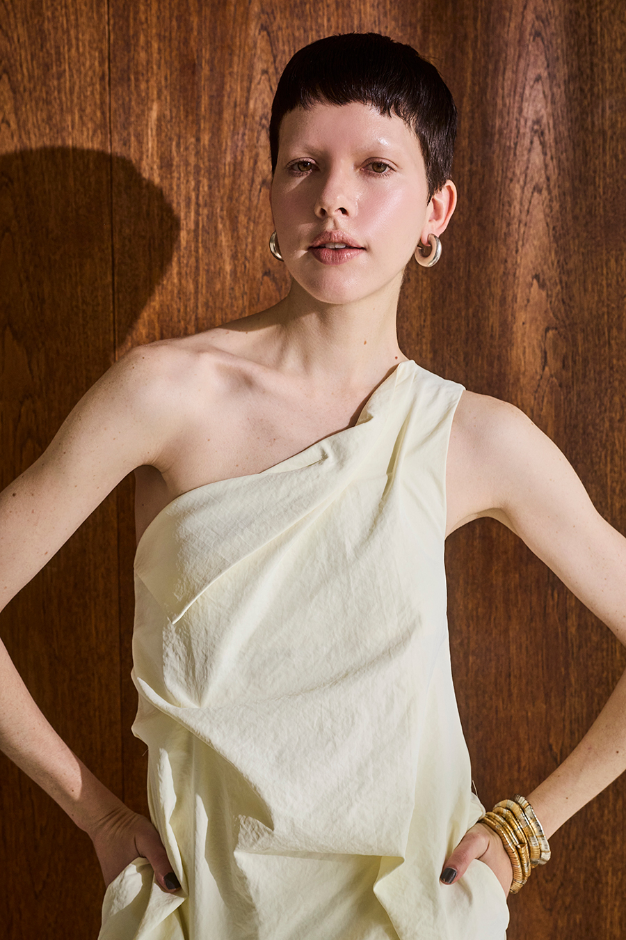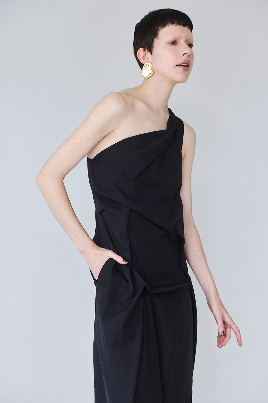 RANDOM TUCK ONE SHOULDER OP