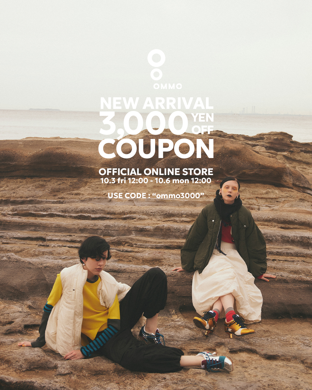 期間: 10月3日(金)12:00 ‐ 10月6日(月)12:00 詳細:上記期間中のみ対象アイテムに使える3,000円クーポンをプレゼント! COUPON CODE : ommo3000